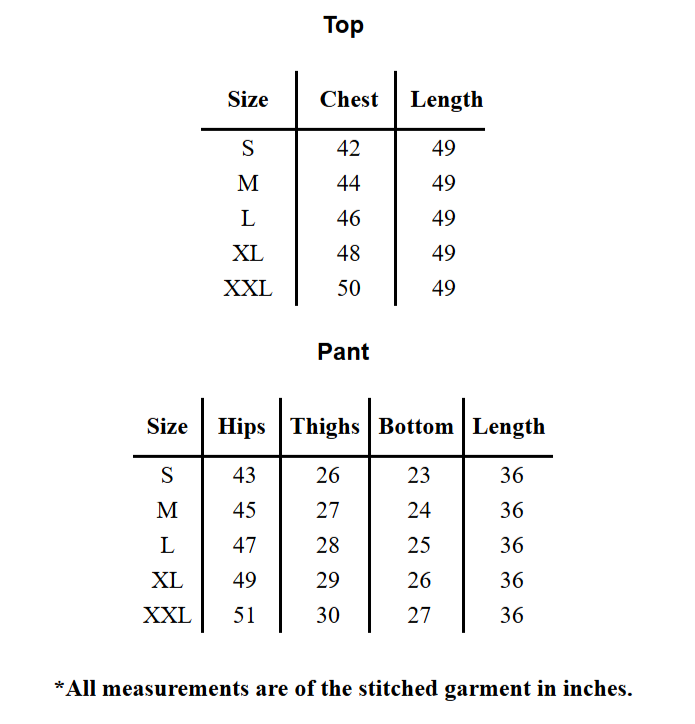 - Top Length is 48 Inch, Pant Length is 38 inch