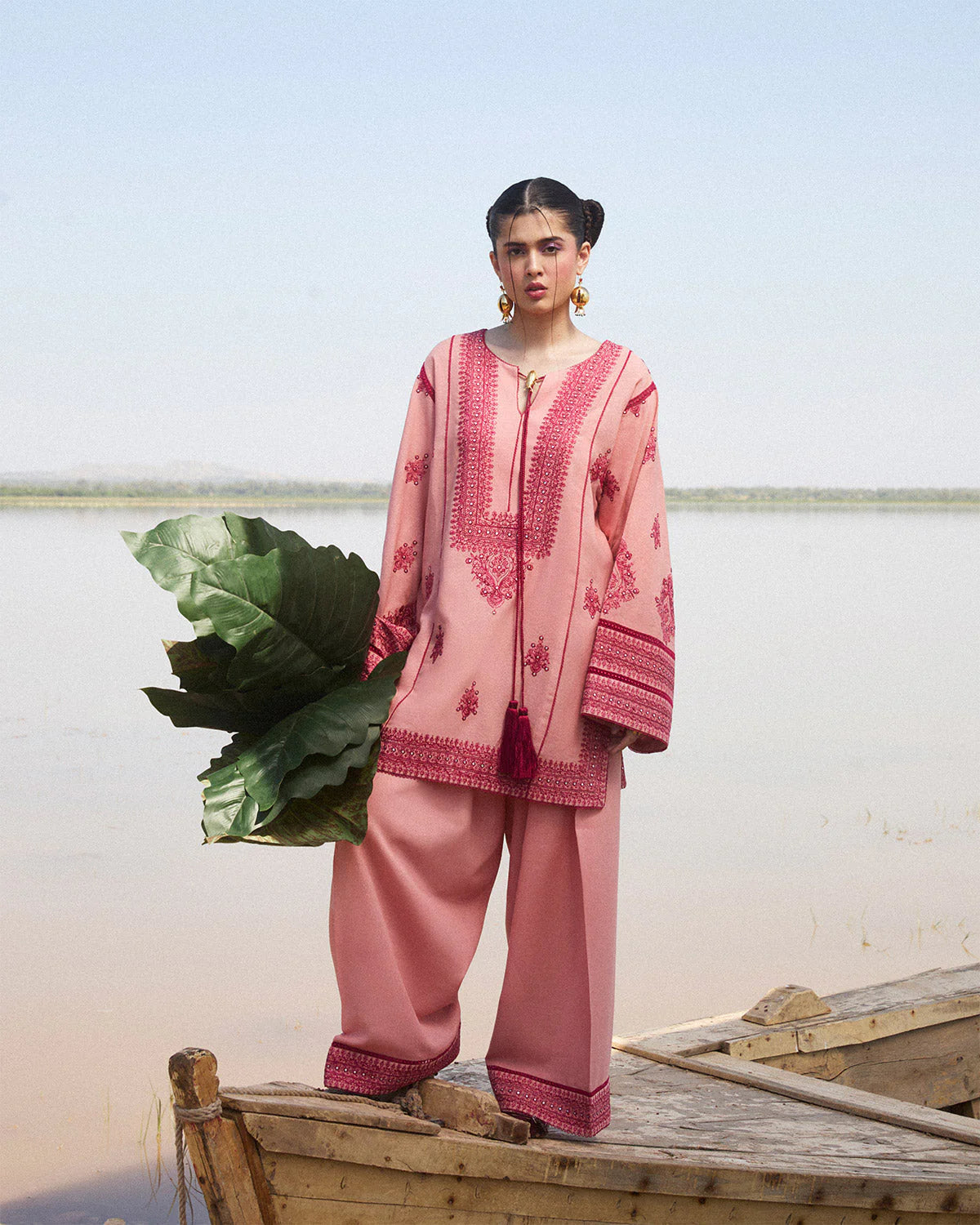 Beautiful Karandi machine embroidery with Dark pink color on the Baby pink premium and softest georgette fabric. The product is Inlined with Cotton, for the unmatched comfort with tassel detailings to elevate the Look.